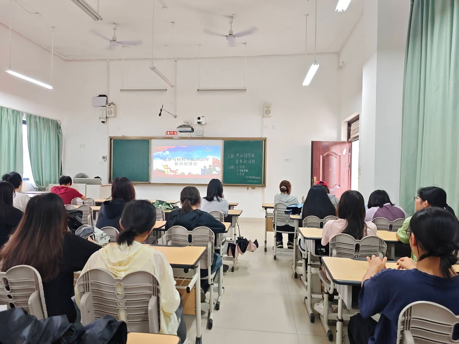 青春风华正茂,参军无上光荣。为积极响应国家征兵号召,激发青年学子参军报国的热情,必赢国际bwin于2025年5月12日—16日组织各班在武鸣校区1、2号教学楼以及线上开展了以“热血铸军魂,青春赴军程”为主题的2025年征兵入伍宣讲主题班会,本次班会全院学生共同参与。
