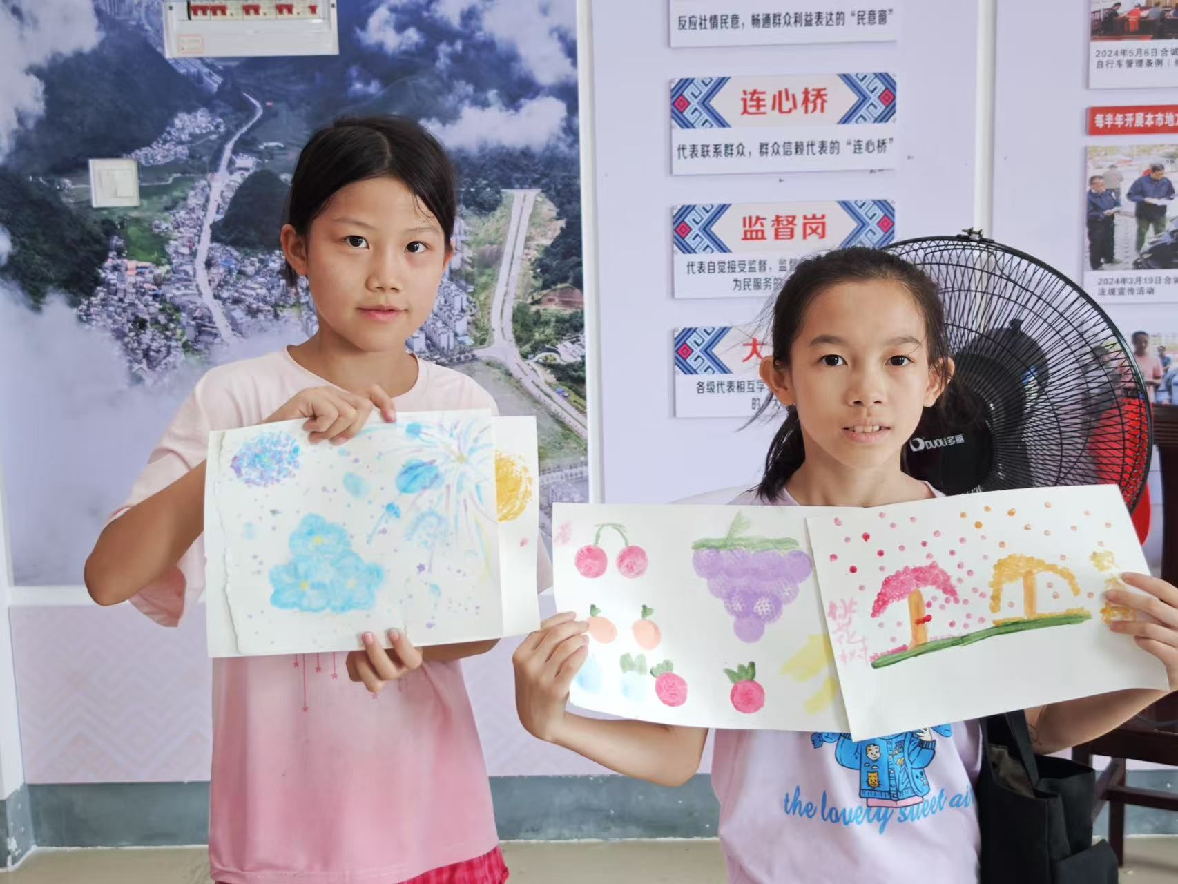 绘画与舞蹈点燃孩子们的艺术热情。孩子们在绘画课上运用手指点印、棉签勾勒、瓶盖拓印等简易技法,创作出童趣盎然的艺术作品。伴随着轻快音乐,孩子们跟随志愿者投入活力四射的啦啦操练习,在节拍中认真地完成每一次抬手伸展、跳跃腾空和旋转位移,纯真笑容与蓬勃活力肆意飞扬。