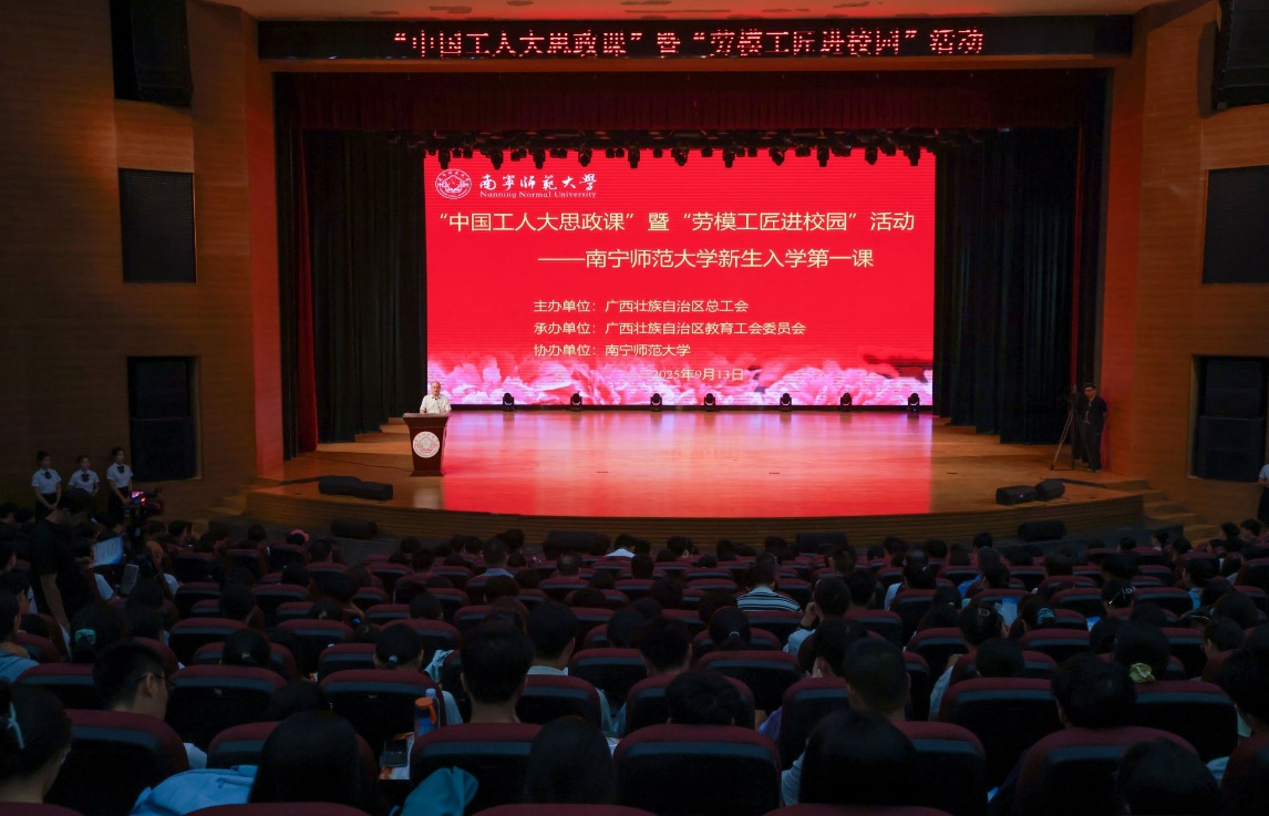 本次活动由广西壮族自治区总工会主办,广西壮族自治区教育工会承办,我校协办,自治区教育工会主席韦孟奇,学校总会计师、校工会主席梁家斌出席活动并致辞。本次活动是对习近平总书记关于弘扬劳模精神、劳动精神、工匠精神重要指示的生动践行,为新生的大学学习生涯注入精神动力。