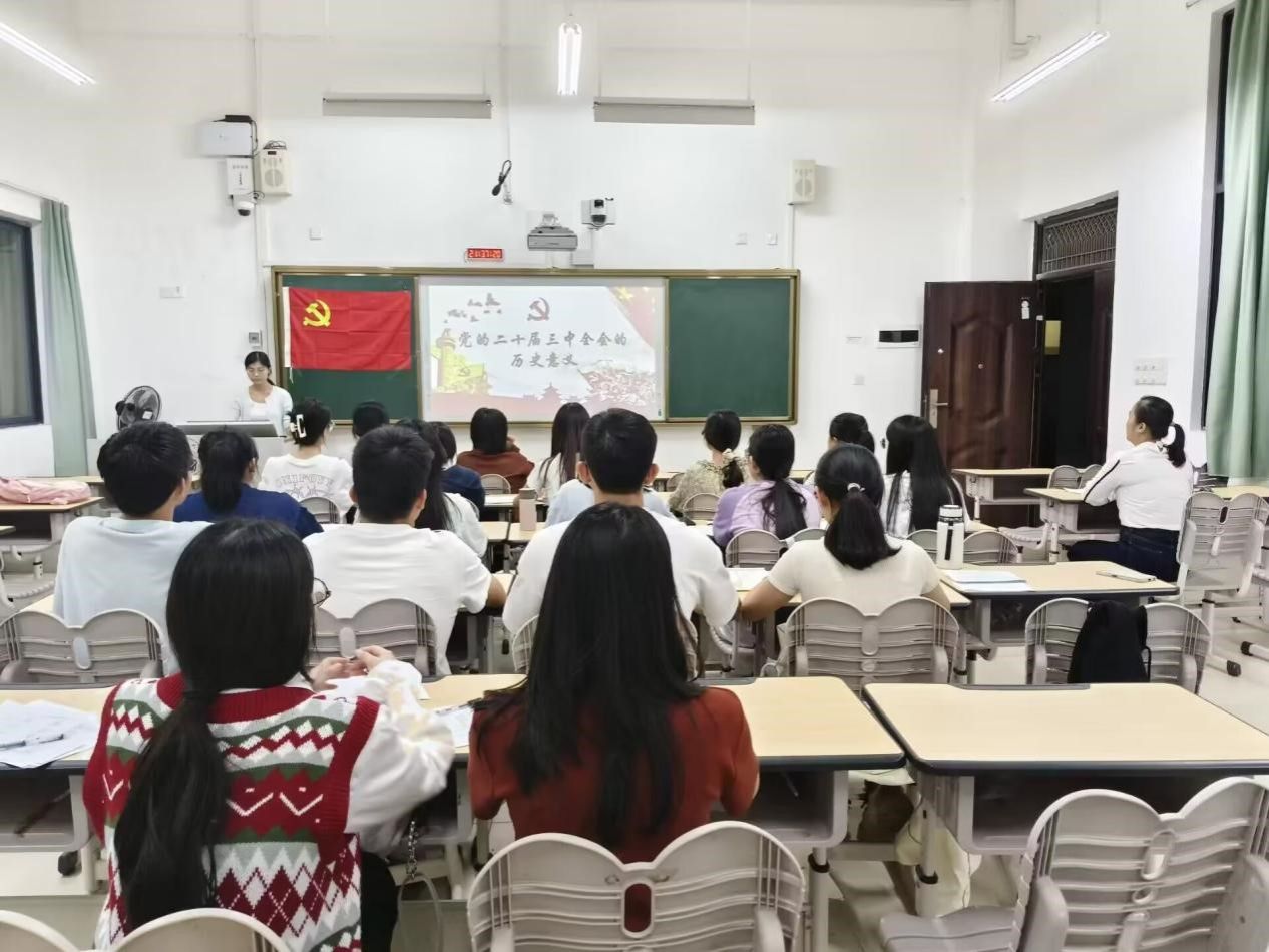 为深入学习宣传贯彻党的二十届三中全会精神,引导广大党员同志深刻领会全会的重要意义,进一步坚定理想信念,增强党性修养,必赢国际bwin学生第二党支部于2024年11月13日于武1-102教室开展专题学习宣传贯彻党的二十届三中全会精神专题会。本次会议由学生第二党支部林钊宇同志主持,学生第二党支部全体党员参与。