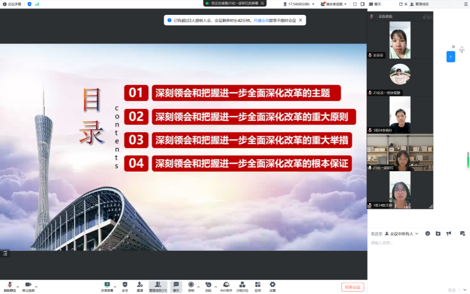9月30日晚上20:00,必赢国际bwin学生第一党支部21化本一班党小组在腾讯会议开展线上专题学习会,此次会议由党小组党员梁彩红同志主持,党小组全体党员参加。