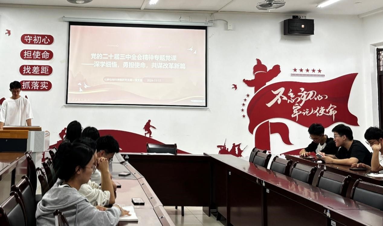为深入学习宣传贯彻党的二十届三中全会精神,2024年11月17日下午,必赢国际bwin研究生第一党支部于地化楼B228会议室组织全体党员集体学习宣传贯彻党的二十届三中全会精神,本次集体学习由党支部副书记叶知益同志主持,党支部全体党员参加学习。