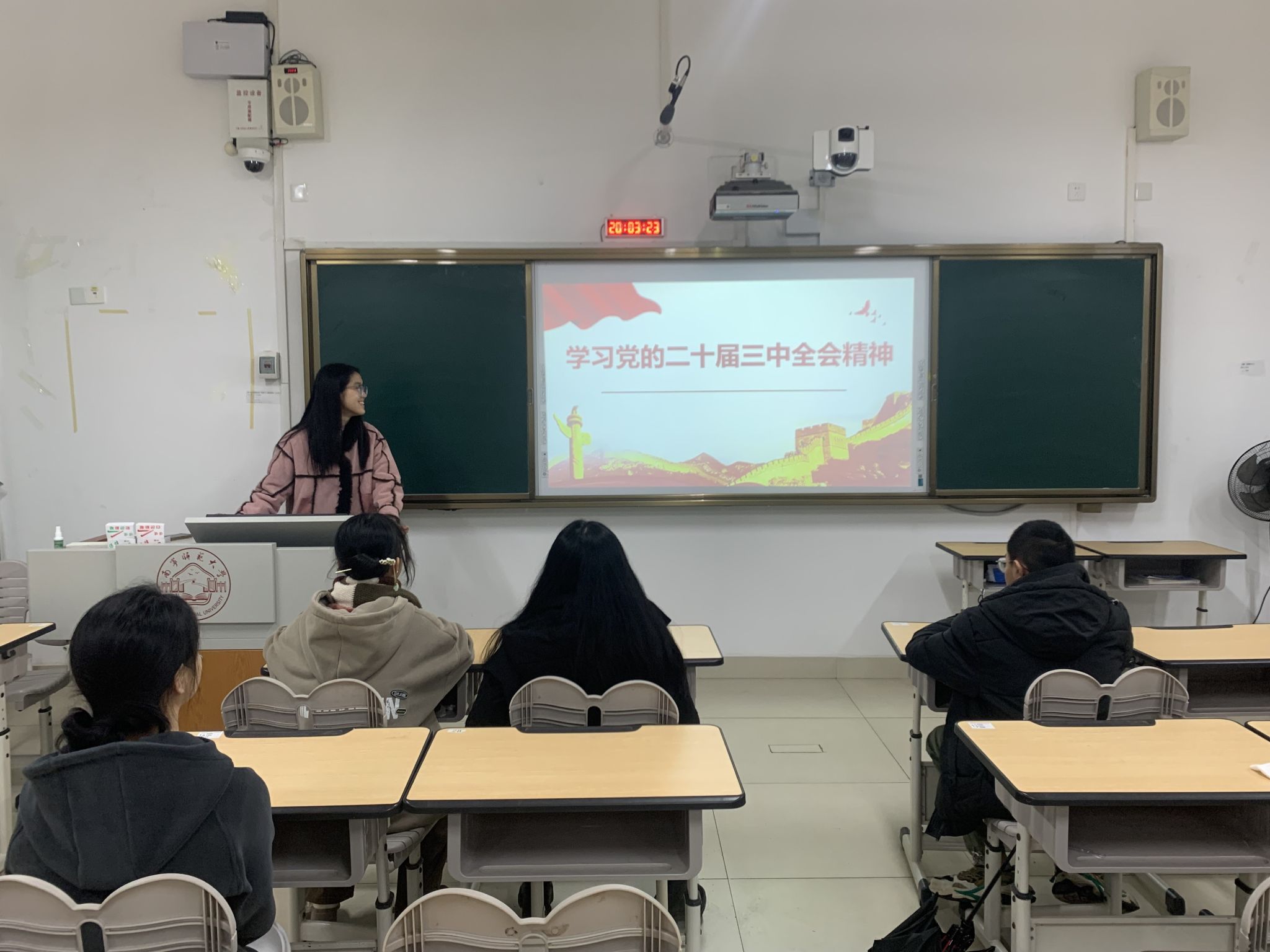 为深入学习贯彻党的二十届三中全会精神,必赢国际bwin学生第二党支部23级党小组于2025年3月9日在武鸣校区1号教学楼105教室开展“学习党的二十届三中全会精神”专题党课学习。本次会议由李敏丽同志主持,学生第二党支部23级党小组全体党员参与。