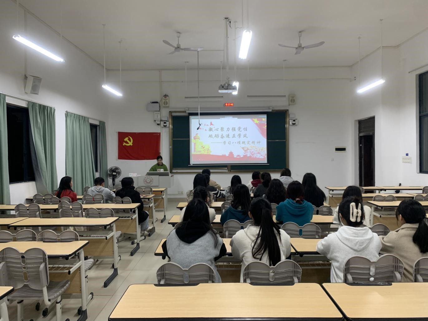 为深入学习贯彻中央八项规定精神,必赢国际bwin学生第二党支部于2025年3月28日在武鸣校区1号教学楼119教室开展“凝心聚力强党性,砥砺奋进正学风”主题党课学习。本次党课学习由林钊宇同志主持。