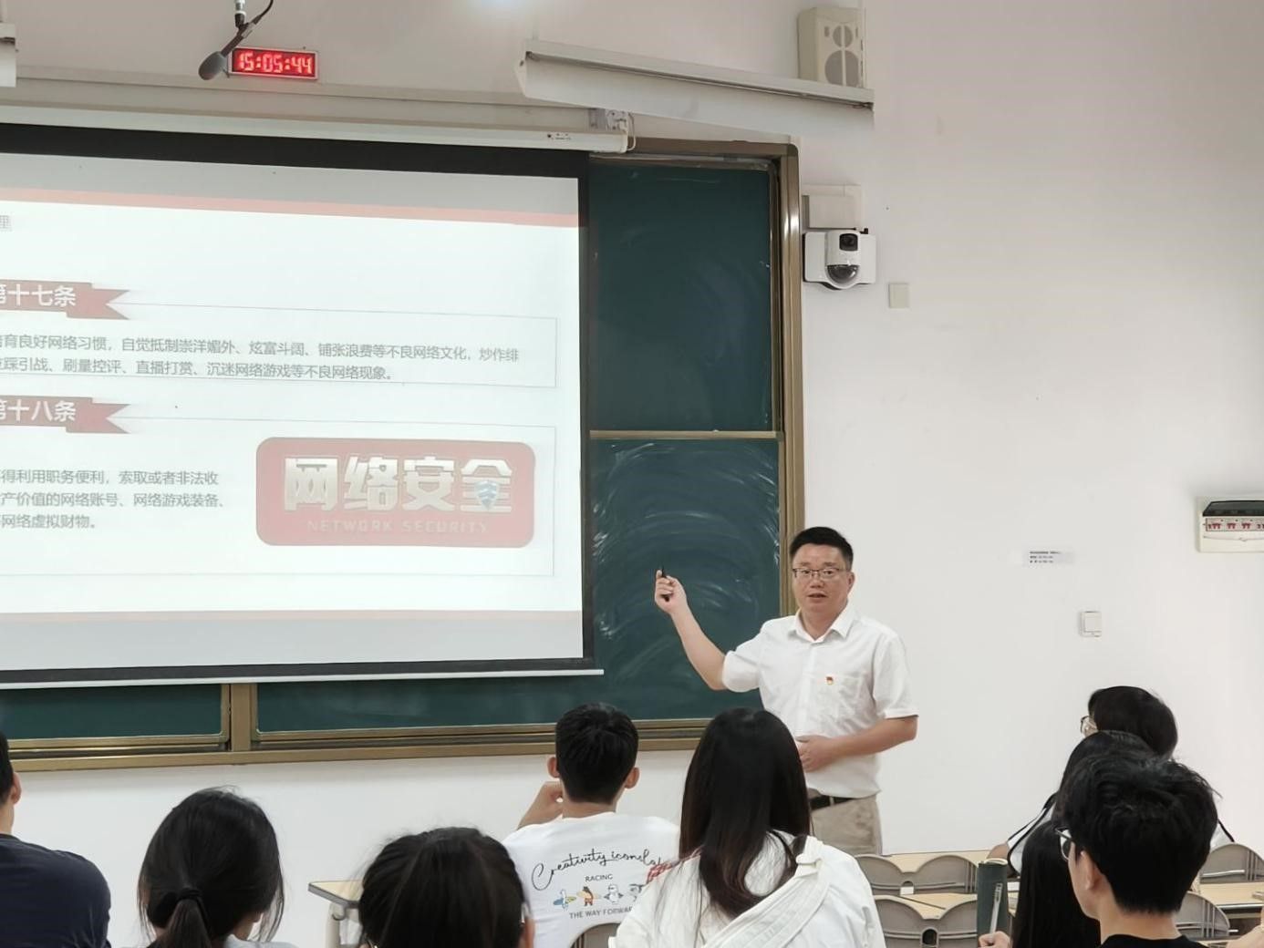 培训伊始,陈今浩副书记围绕“总则”“网络正能量传播”“网络行为管理”“保障和监督”“附则”五个部分依次进行讲解。陈今浩副书记强调,发展对象必须时刻保持清醒的头脑,时刻规范自己的行为,做到言行一致,严格遵守党的纪律和规矩,不得在网络上发表不当言论;对于网络上的事件言论要有自己的判断,要不断提高自身辨别是非的能力,不得传播不实信息,更不能参与网络谣言的传播和扩散。